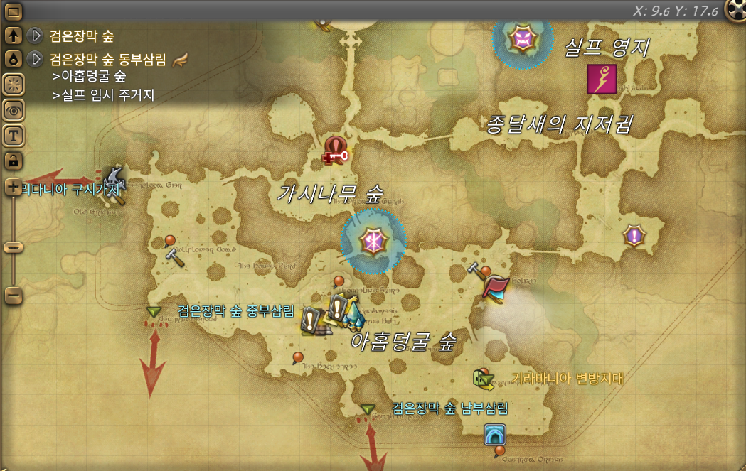 검은장막 숲 > > 검은장막 숲 동부삼림 > 아홈덩굴 숲 > 실프 임시 주거지 (22.4, 26.5)